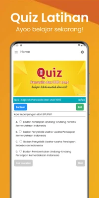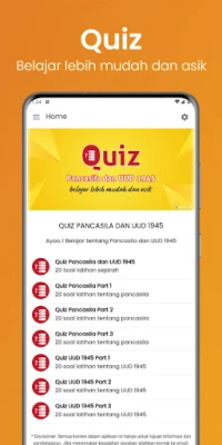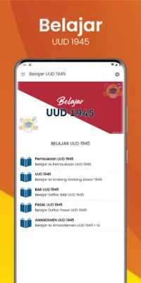 Untuk mengukur dan memperkuat pemahaman Anda, aplikasi ini dilengkapi dengan serangkaian kuis soal latihan yang menantang. Fitur ini dirancang untuk menguji sejauh mana Anda telah menguasai materi, sekaligus memberikan kesempatan untuk meninjau kembali area yang membutuhkan perhatian lebih. Dengan antarmuka yang intuitif dan mudah digunakan, aplikasi ini sangat ideal bagi pelajar yang sedang mempersiapkan ujian, mahasiswa yang mendalami ilmu hukum dan tata negara, atau siapa saja yang memiliki ketertarikan untuk memperdalam pengetahuan fundamental tentang pilar-pilar negara kita.