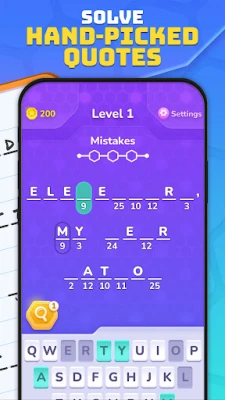 Cryptogram + — Word Brain Puzzle menguji kecerdasan Anda. Pecahkan kode sandi, uraikan huruf, dan dekode kutipan misterius. Hubungkan kata dan angka untuk menaklukkan teka-teki kripto harian yang unik dan menantang.
