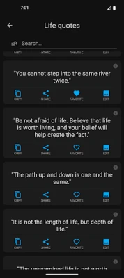 Awali setiap hari dengan percikan inspirasi yang membangkitkan semangat! Aplikasi Kutipan Hidup hadir sebagai gudang kebijaksanaan harian Anda, menawarkan khazanah lebih dari 1.100 permata kata yang dipilih secara cermat. Dengan cakupan 30 kategori beragam—mulai dari kebahagiaan dan asmara hingga puncak kesuksesan dan eksplorasi diri—Anda akan selalu menemukan resonansi yang tepat untuk setiap aspek perjalanan hidup Anda, memicu pemikiran mendalam dan perubahan berarti.