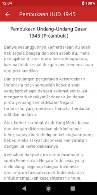 Selain itu, Aplikasi Panduan Pancasila dan UUD 1945 Amandemen menyediakan teks lengkap Pembukaan dan pasal-pasal UUD 1945 hasil amandemen keempat yang disahkan pada 10 Agustus 2002. Seluruh pasal dikelompokkan secara sistematis, baik berdasarkan pasal itu sendiri maupun bab yang menaunginya, memudahkan navigasi dan studi. Fitur pencarian intuitif memungkinkan Anda menemukan pasal tertentu hanya dengan mengetikkan nama bab. Keistimewaan lainnya adalah adanya penandaan jelas antara pasal yang telah dan belum diamandemen, memberikan gambaran utuh evolusi konstitusi kita. Informasi UUD 1945 dalam aplikasi ini bersumber dari laman resmi Mahkamah Konstitusi, sementara butir-butir Pancasila dihimpun dari Wikipedia, memastikan akurasi dan kredibilitas data yang disajikan.