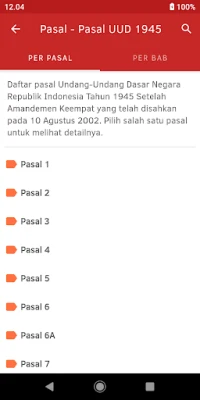 Jelajahi Panduan Pancasila & UUD 1945, aplikasi lengkap berisi 5 Sila, 45 butir Pancasila, serta Pembukaan dan pasal-pasal UUD 1945 Amandemen Keempat. Pahami dasar negara Indonesia dengan mudah, dilengkapi pengelompokan berdasarkan Pasal dan Bab serta fitur pencarian.