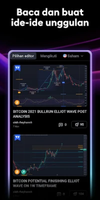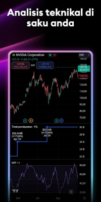 Rasakan kekuatan analisis teknikal dengan fitur grafik TradingView yang revolusioner, melampaui ekspektasi platform desktop. Nikmati akses tanpa batas ke semua fitur, pengaturan, dan peralatan grafik dari versi web, kini tersedia di perangkat seluler Anda. Jelajahi lebih dari 10 jenis grafik inovatif, mulai dari grafik garis standar hingga Renko dan Kagi yang berfokus pada fluktuasi harga tanpa terikat waktu, esensial untuk mengidentifikasi tren jangka panjang. Manfaatkan berbagai alat analisis canggih seperti indikator, strategi, dan objek gambar untuk mempertajam pandangan Anda. Dengan daftar pantau yang dapat disesuaikan dan peringatan harga real-time, Anda tak akan melewatkan peluang. Pantau perubahan pasar terkecil pada saham, Forex, komoditas, dan kripto, memungkinkan Anda bereaksi cepat untuk transaksi yang menguntungkan.